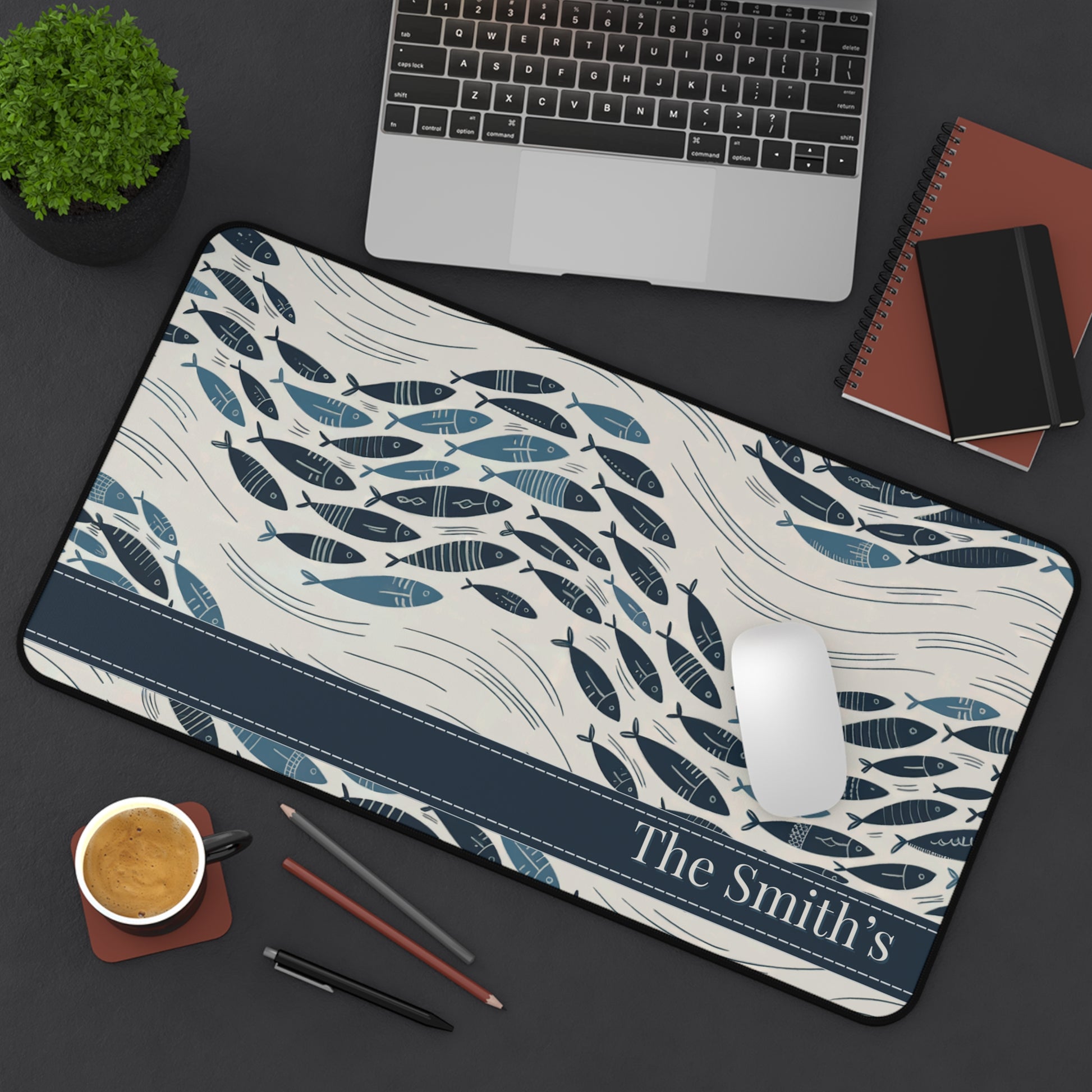 Custom Fish Design Desk Mat — Large Waterproof Mouse Pad for Home Office